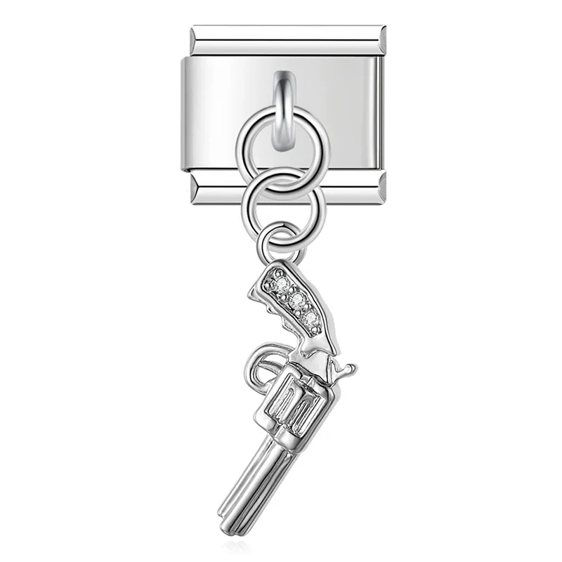 Charm Pistola Silber für Ihr italienisches Armband mit einem Anhänger in Form eines Revolvers.